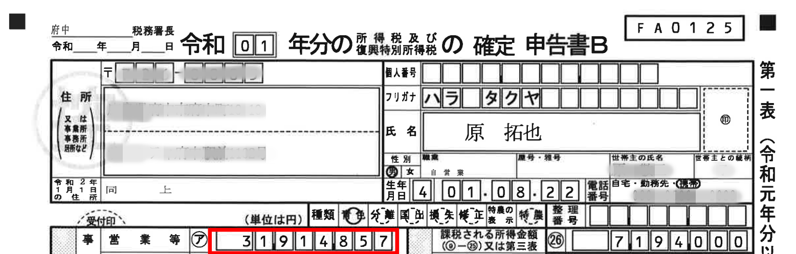 こちら令和元年度確定申告B書類の実物になります。