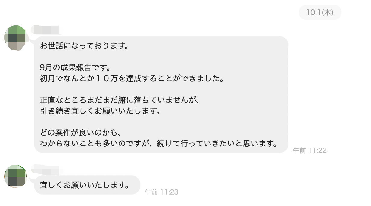 そうしましたら、初月で10万、2か月目で20万と稼ぐことができ、自分でもびっくりしています。