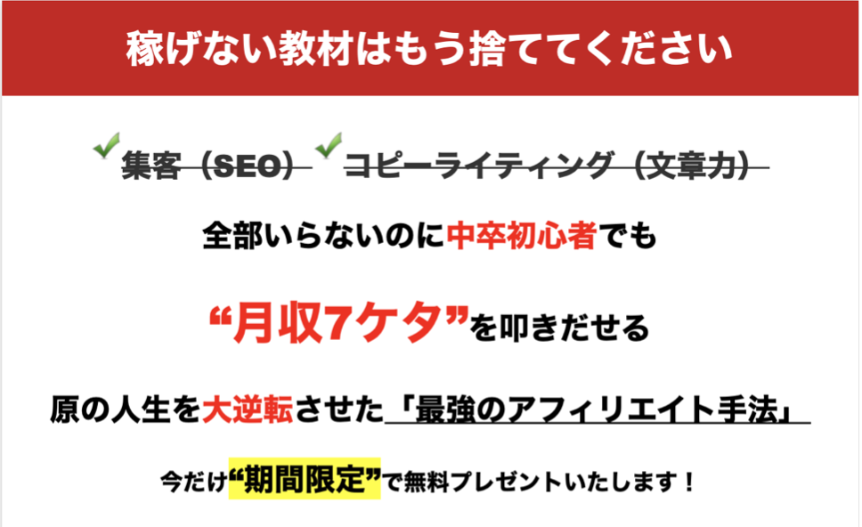 『パソコンに触ったことがない初心者でもコピペだけで初月で100万以上稼げる極秘のアフィリエイト手法』